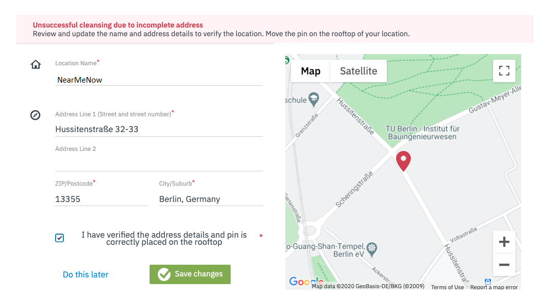 - Location cannot be found - Incomplete address