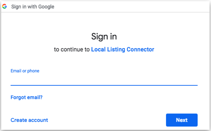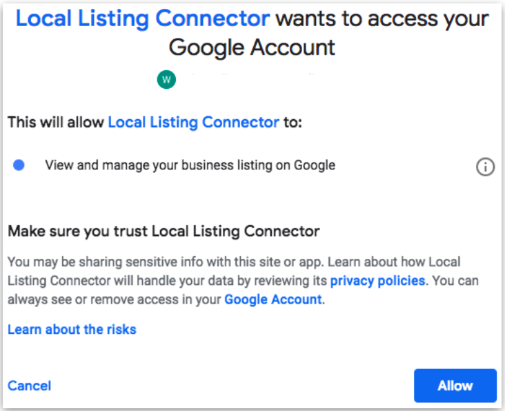 Allow Access - A window will open in which you are asked to grant the Local Listing Connector access to the Google account.