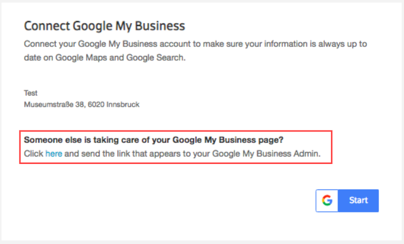 Start - If you wish to connect a Google Business Profile location managed by someone else by sending them the link, move to step 8.