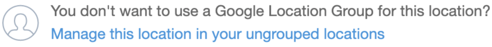 If you have not moved the location to a location group, the location will be found in the personal section of your Google Business Profile account. To search the personal, ungrouped section when trying to connect to Google Business Profile, click on the highlighted message "Manage this location in your ungrouped location" where you can select the location you wish to connect.