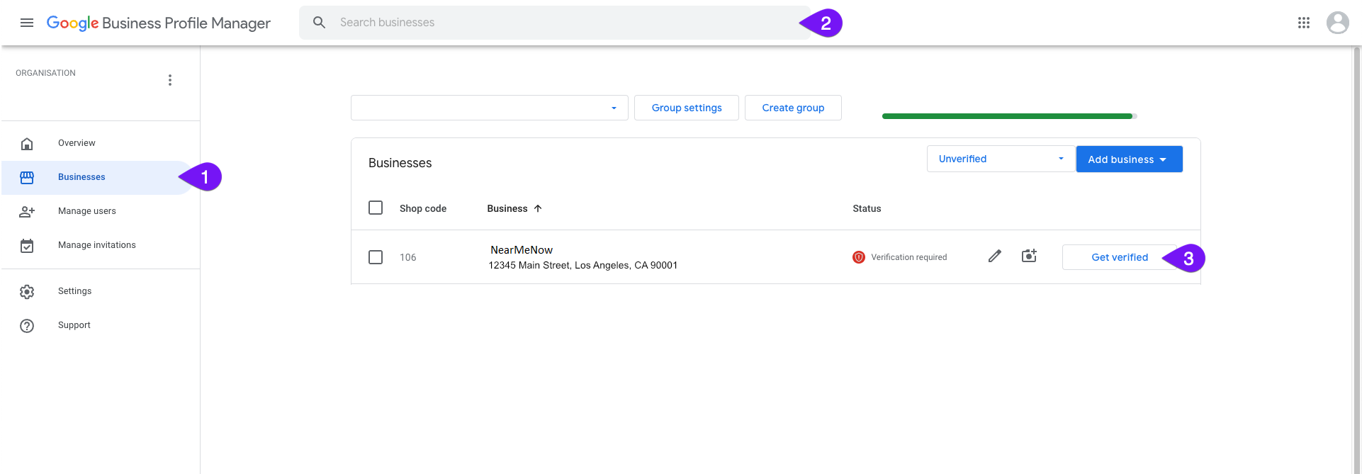 In order for a business to make updates to their GBP or use tools like NearMeNow's CoreX to manage business profiles - businesses will need to verify their business with Google.